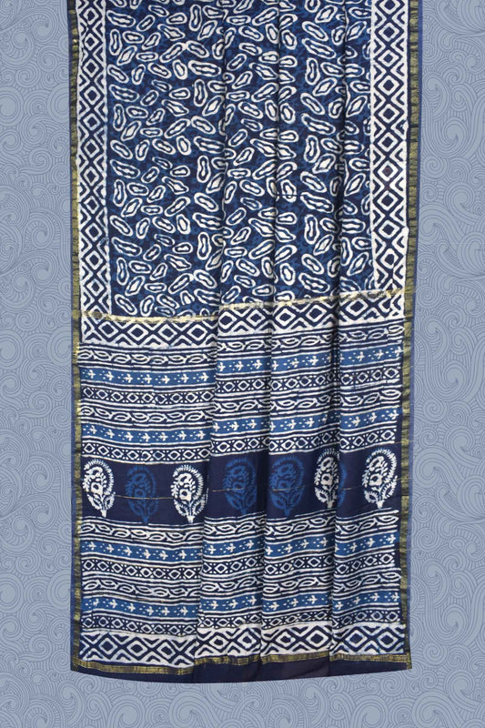 Indigo Blue Chanderi Hand Block Print Saree