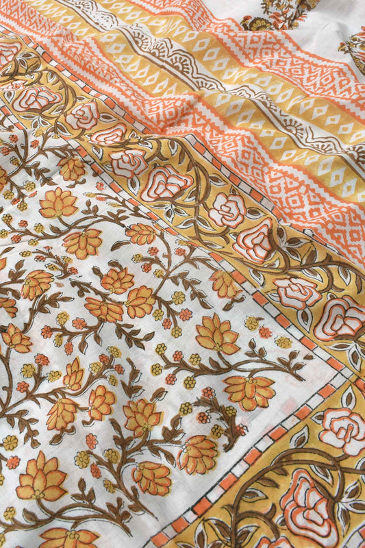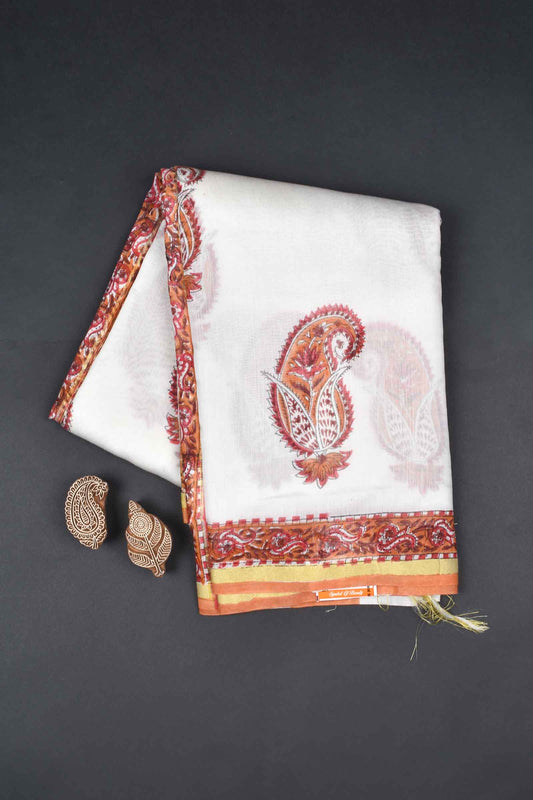 White Mango Butta Chanderi Hand Block Print Saree