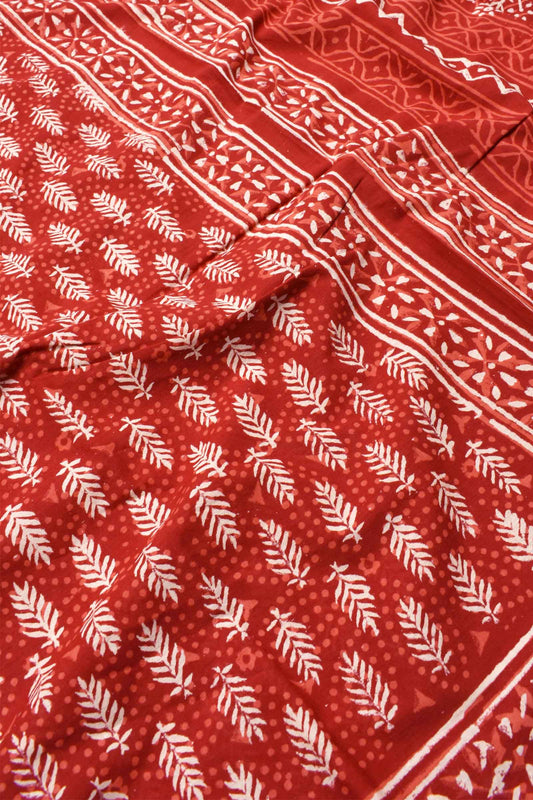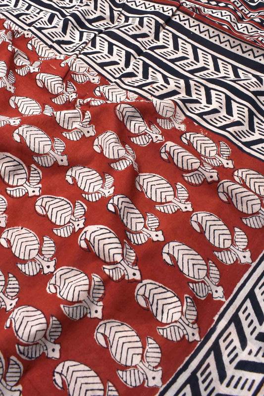 Rust Red on Offwhite Pure Soft Cotton Bagru Hand Block Printed Saree