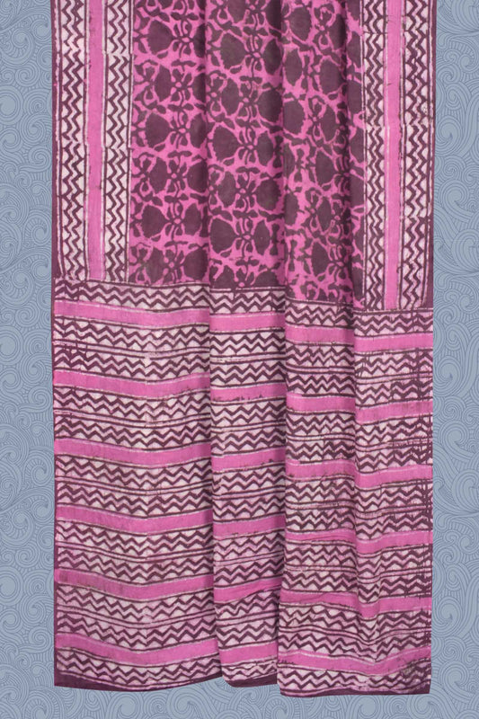 Pink Pure Soft Cotton Bagru Hand Block Printed Saree