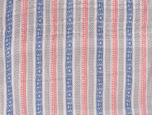 Blue Pure Cotton Mul Mul ZigZag Border Printed Saree