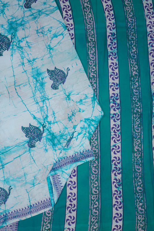 Light Blue Jaipur Cotton Green Blue Butterfly Print Saree
