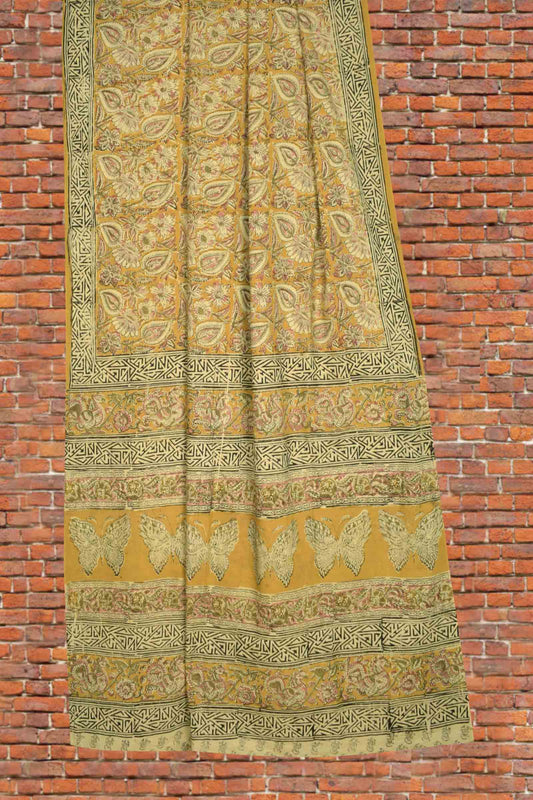 Yellow Kalamkari Pure Cotton Summer Blooms Printed Saree