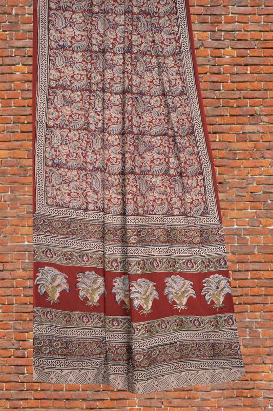 Maroon Kalamkari Pure Cotton Pretty Paisley Printed Saree