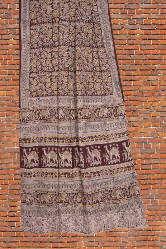 Dark Maroon Kalamkari Pure Cotton Summer Vibes Printed Elephant Pallu Saree
