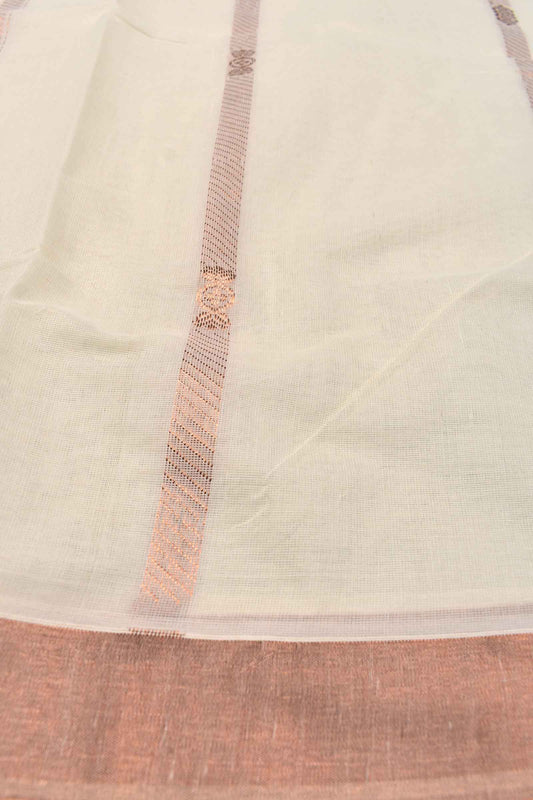 Off White Pure Kerala Cotton Peacock Pallu Copper Zari Saree