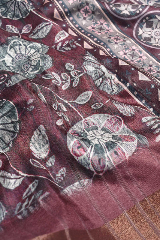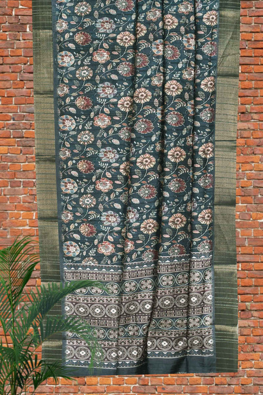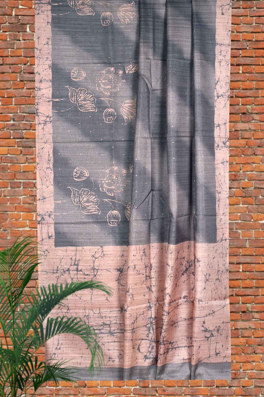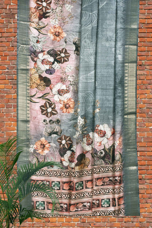 Grey Digital Flower Kotha Cotton Saree
