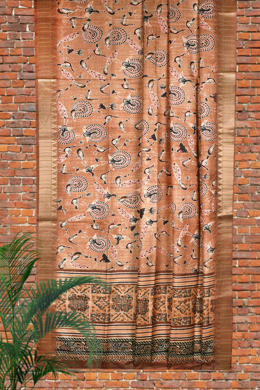 Light Brown Digital Kotha Cotton Saree