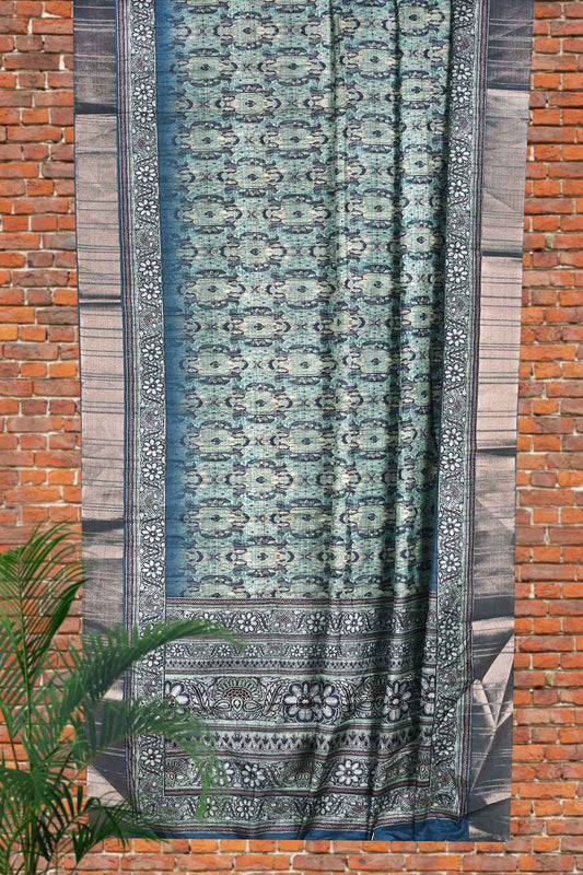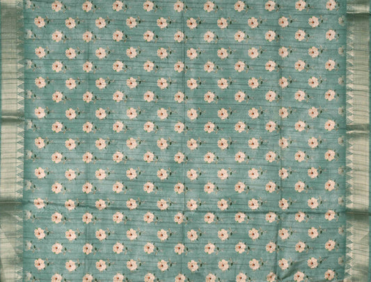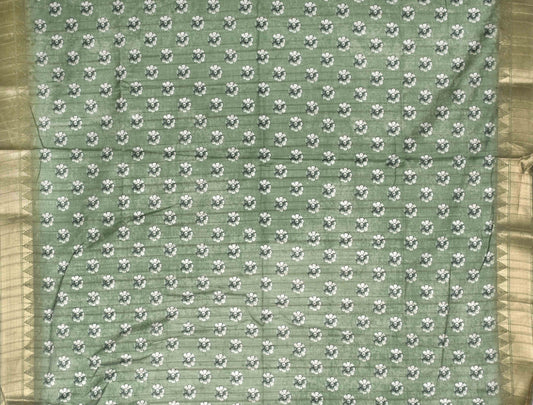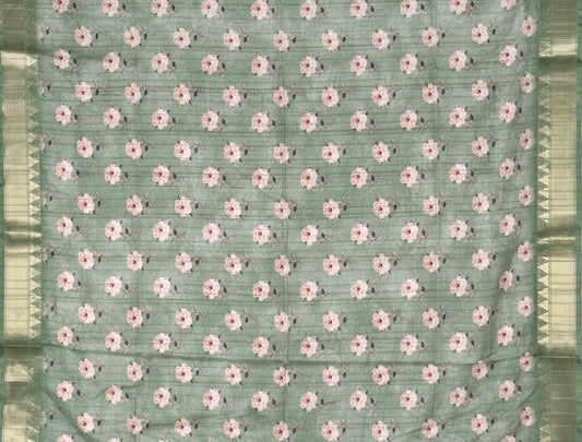 Green Flower Digital Kotha Cotton Saree
