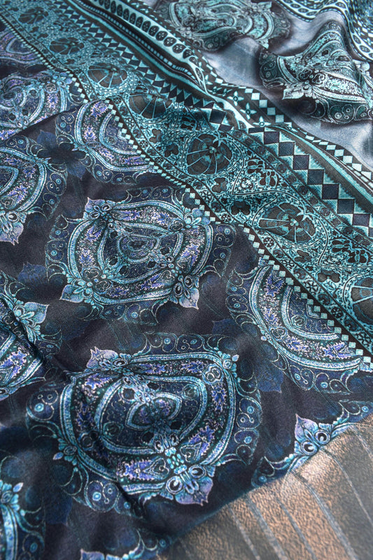 Grey Digital Bird Kotha Cotton Saree