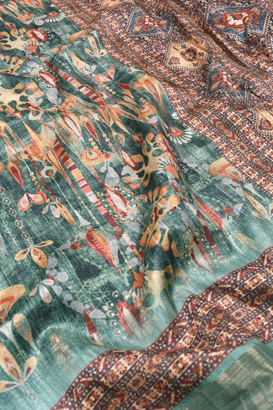 Green Big Flower Digital Kotha Cotton Saree