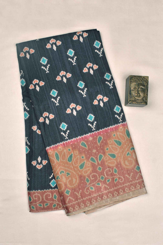 Dark Grey With Pink Kotha Cotton Floral Print Contrast Pallu Saree