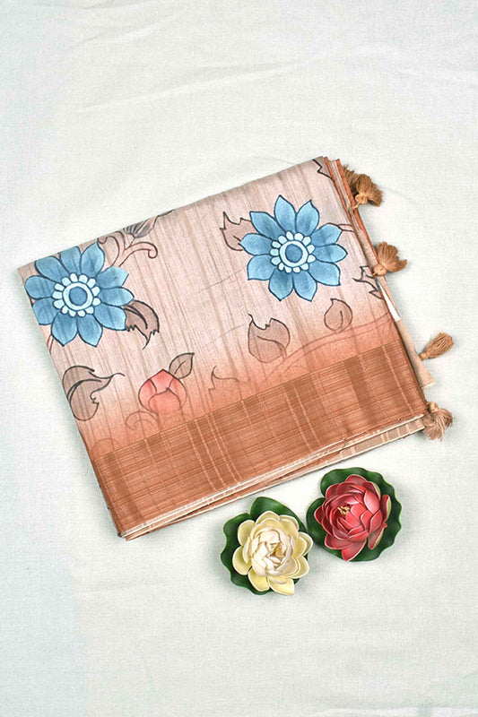 Light Brown Kotha Cotton Multicolor Flower Design Digital Print Saree