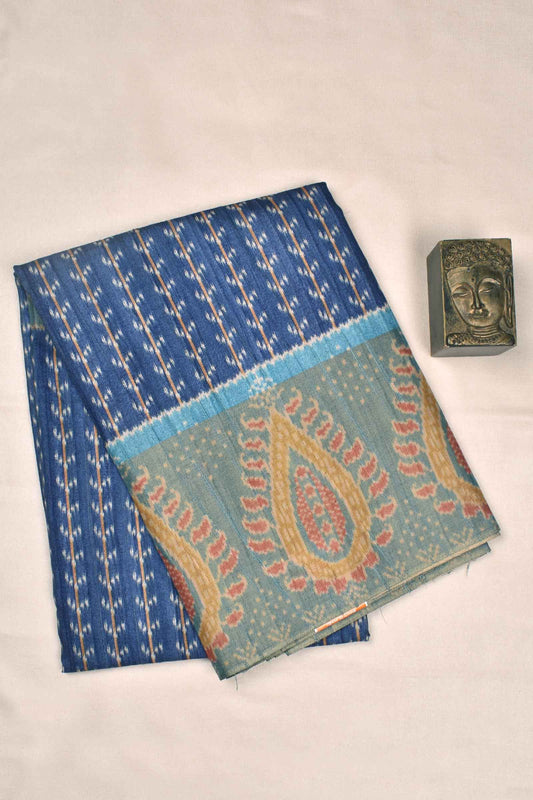 Blue Kotha Cotton All Over Ikat Style Print Saree