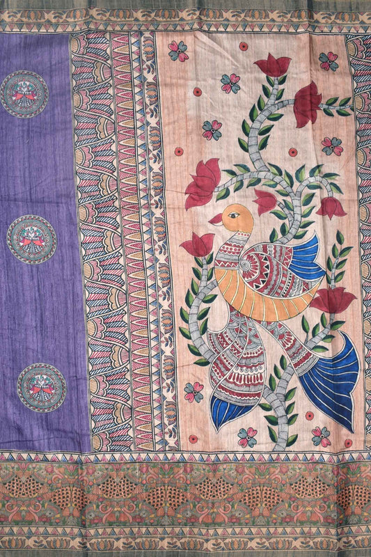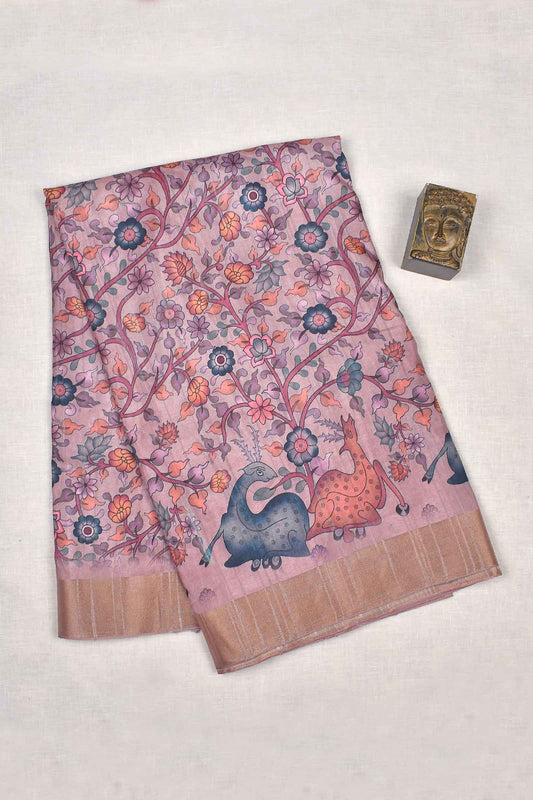 Light Violet Kotha Cotton Dual Deer Peacock Pallu Digital Print Saree