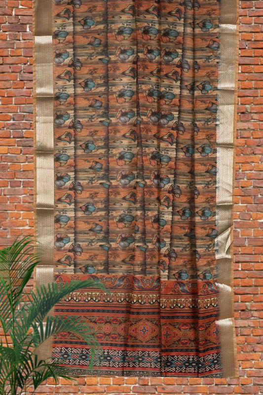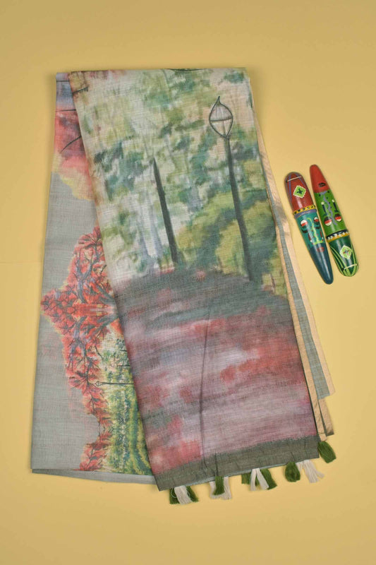 Light Green Semi Linen Nature's Bounty Digital Print Saree