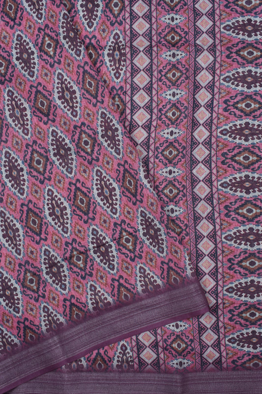 Pink Semi Linen Fancy Digital Printed Saree