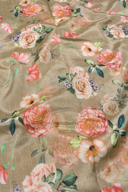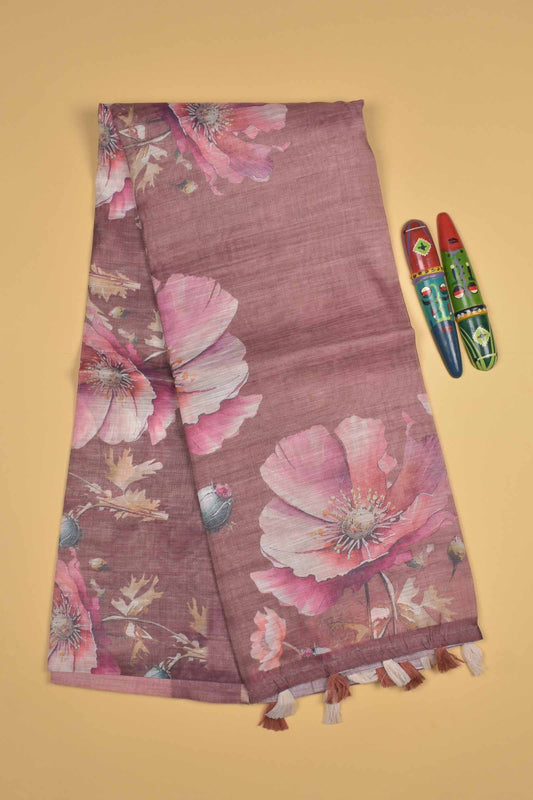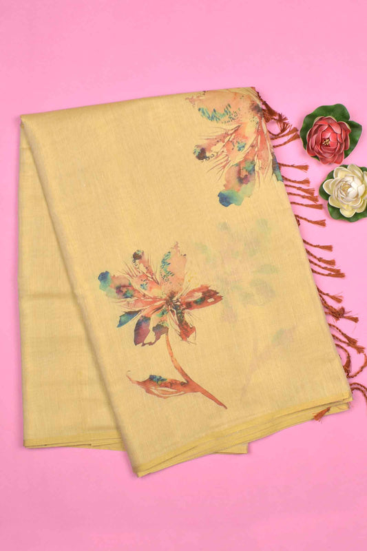 Light Sandal Semi Linen Lily Digital Print Saree