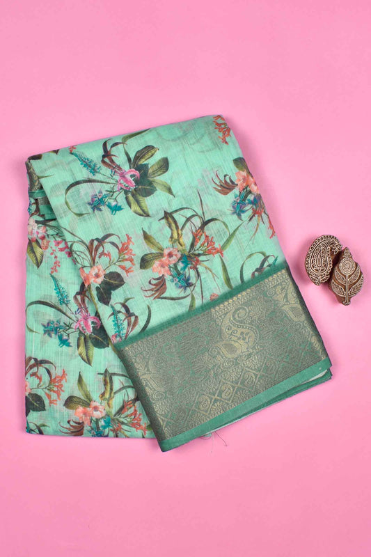 Light Green Semi Linen Dola Jacquard Printed Border Saree