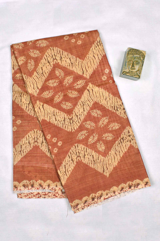 Rust Brown Semi Linen Fancy Waves Digital Print Saree