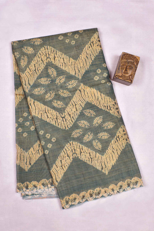 Green Semi Linen Dots and Darts Tissue Style Saree