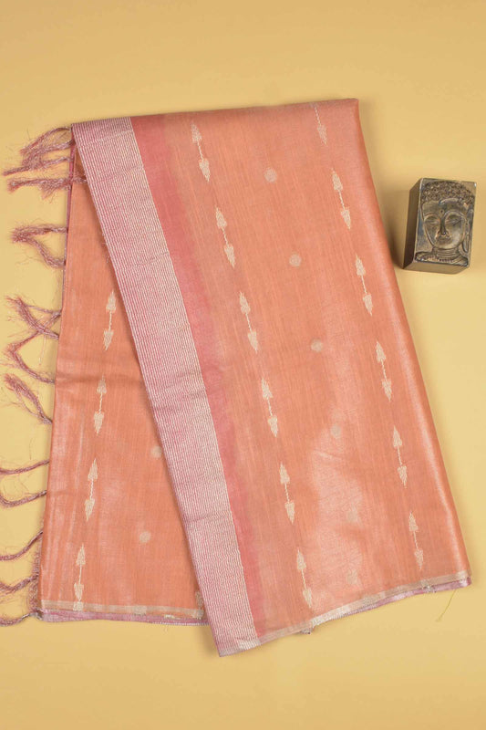 Light Orange Semi Linen Dots and Darts Tissue Style Saree