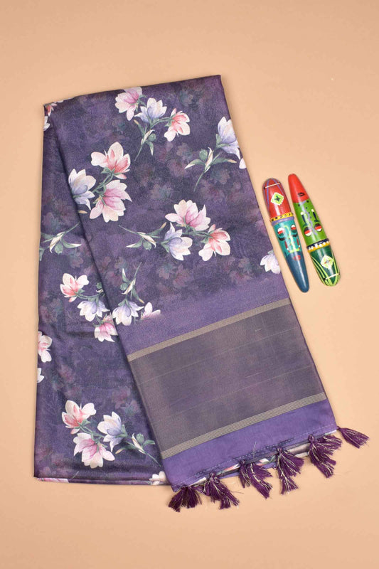 Violet Semi Linen Floral Power Digital Print Saree
