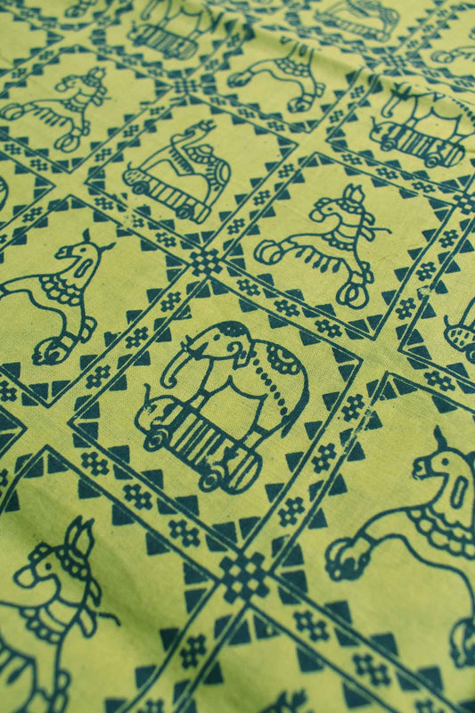 Light Green Pure Sungudi Cotton Animal Frames Contrast Border Pallu Saree