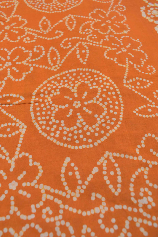 Orange Pure Sungudi Cotton Floral Flowers Kolam Printed Saree