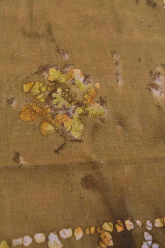 Sandal Grey Pure Sungudi Cotton Floral Leaves Zari Border Batik Pallu Saree
