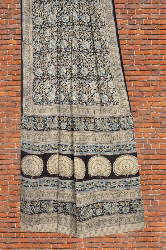 Black Kalamkari Pure Cotton Midnight Gardenia Printed Saree