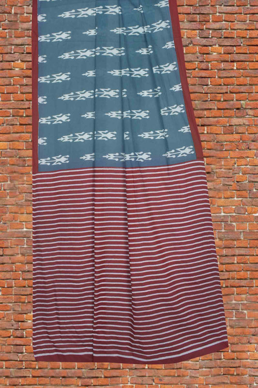Grey Jaipur Cotton Ikkat Style Printed Contrast Crimson Pallu Saree