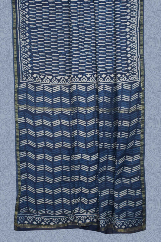 Blue Chanderi Cotton Hand Block Printed Saree