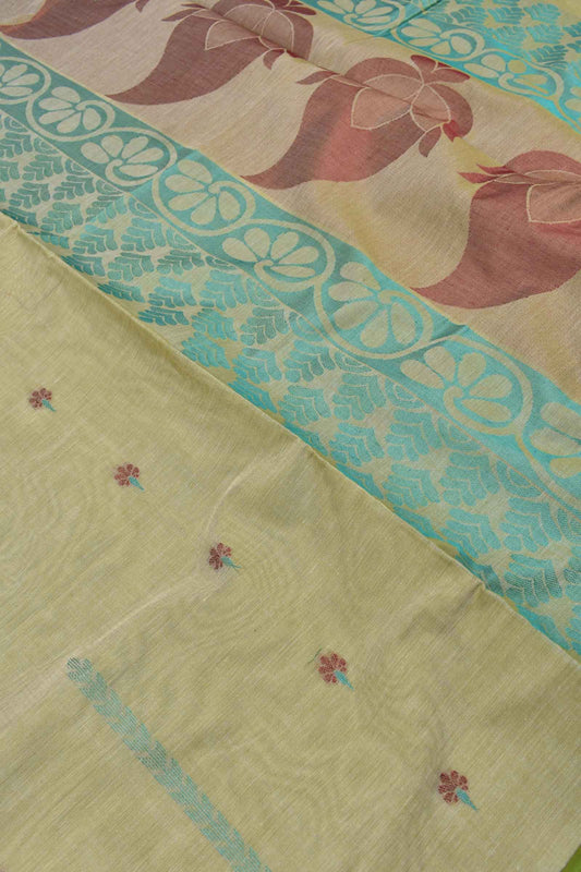 Light Green Banaras Tissue Crush Silver Jari Butta Saree