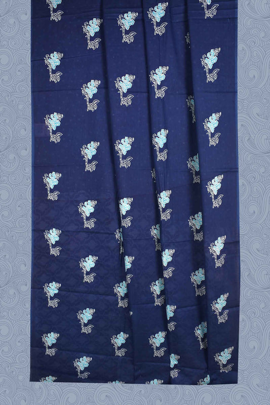 Blue Flower Digital Kotha Cotton Saree