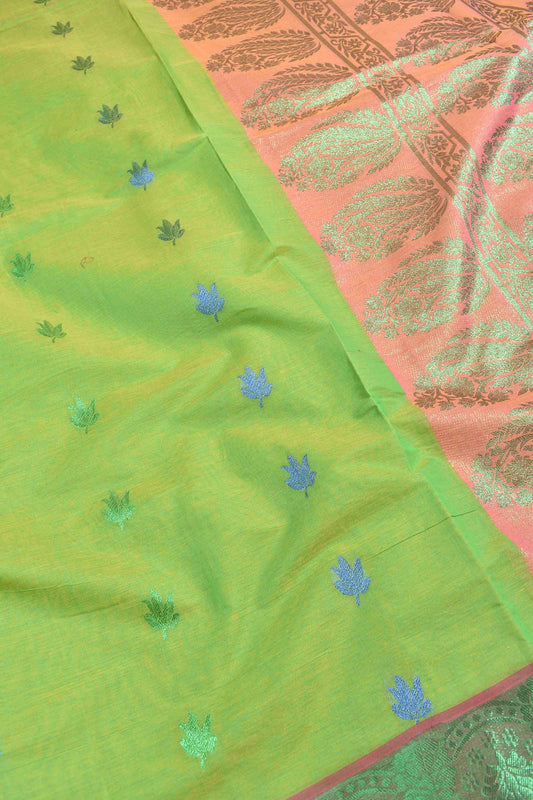 Green Pure South Cotton Multi Jari Butta Rich Pallu Saree