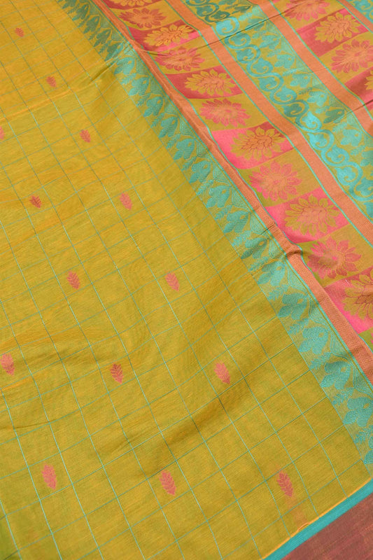 Green Pure South Cotton Body Checks Rich Pallu Saree