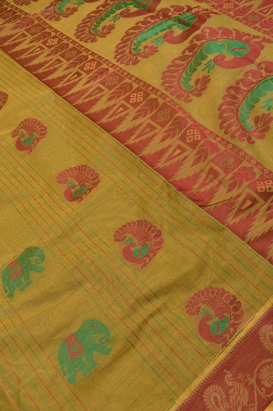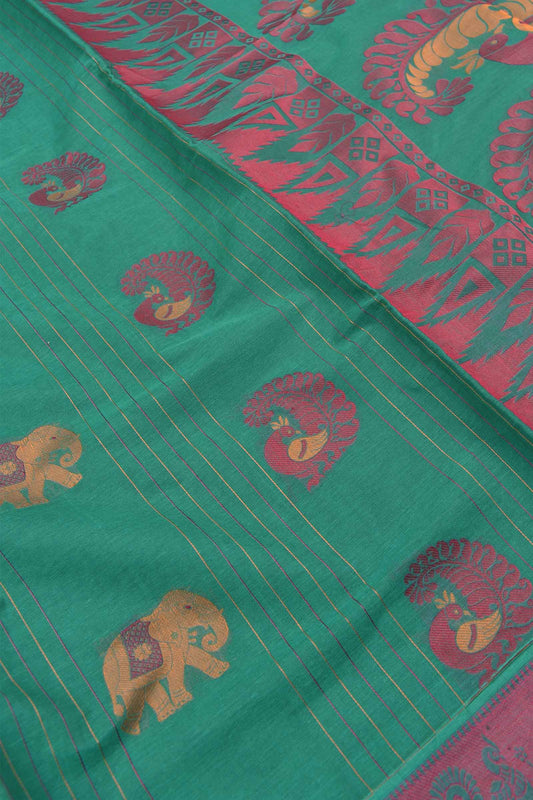 Green Pure South Cotton Elephant Peacock Butta Rich Pallu Saree
