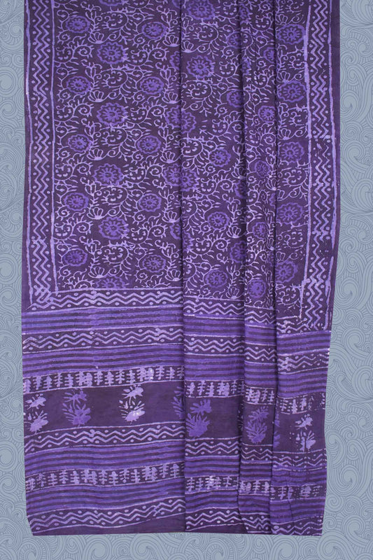 Violet Pure Soft Cotton Flowers All Over Bagru Hand Block Printed Saree