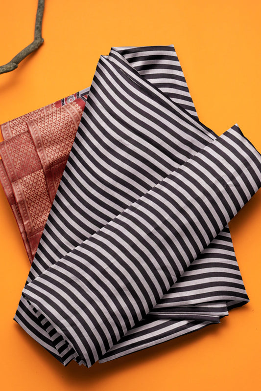 Black With White Semi Dola Zari Border Ajrakh Pallu Saree