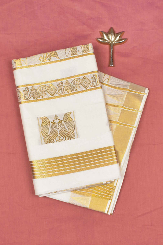 Off White Kerala Cotton Big Tower Butta Zari Border Saree