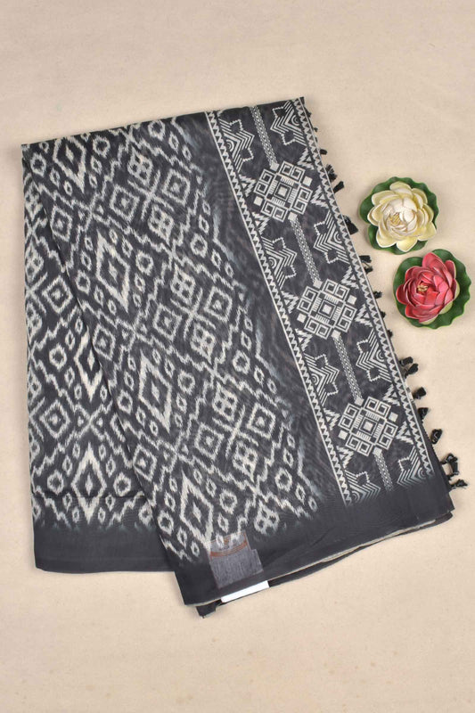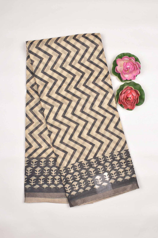 Black With White Semi Chanderi Cotton Fancy Design Digital Print Saree