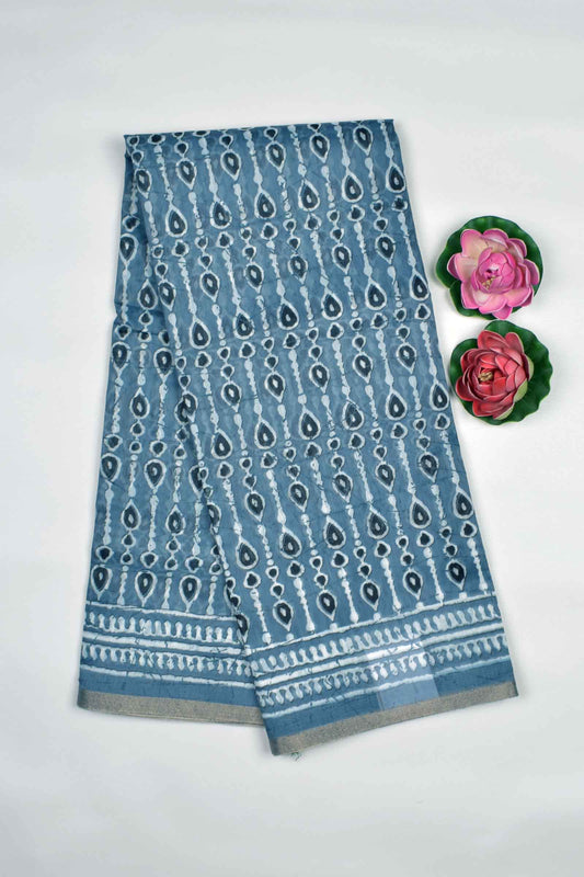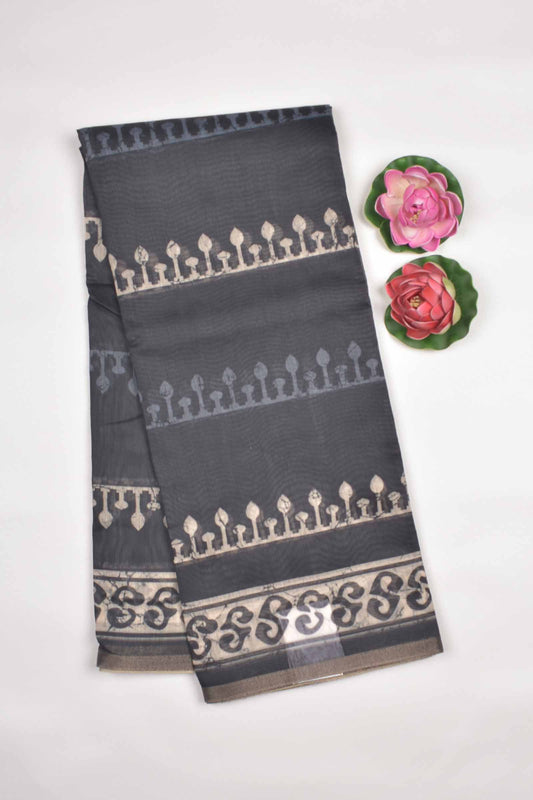 Grey Semi Chanderi Cotton Taj Domes Print Saree