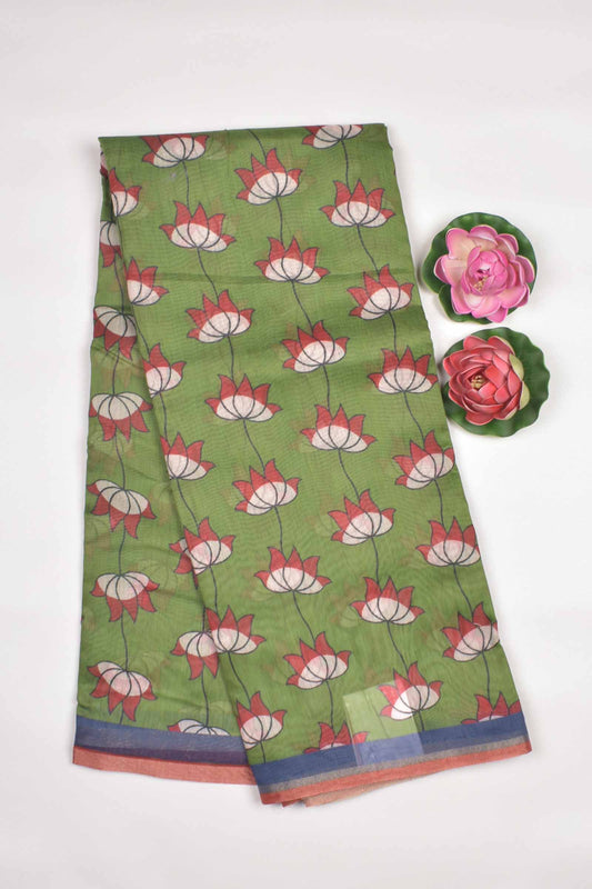 Green Semi Chanderi Cotton Pretty Pond Print Saree