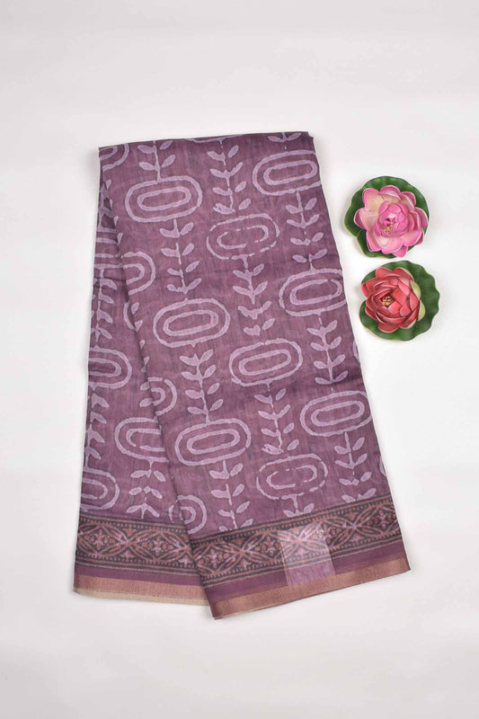 Light Violet Semi Chanderi Cotton Abstract Frames Digital Print Saree