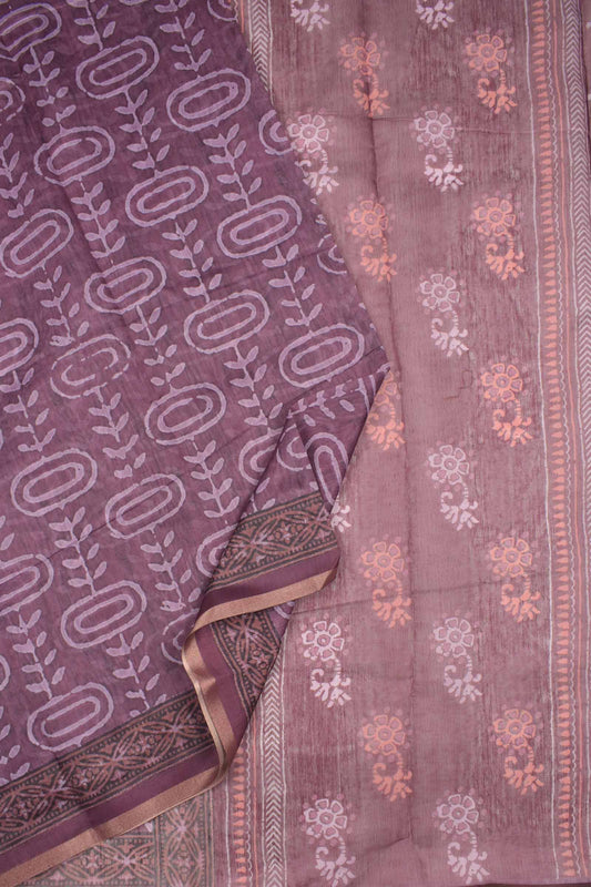 Light Violet Semi Chanderi Cotton Festive Vibe Pallu Saree