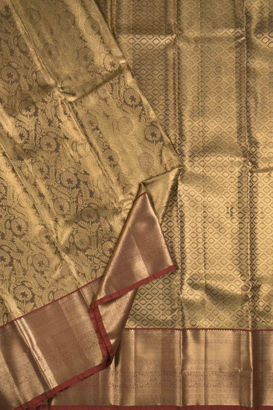 Golden Green With Maroon Semi Silk Lotus Weaving Butta Zari Border Pallu Saree NAA1001