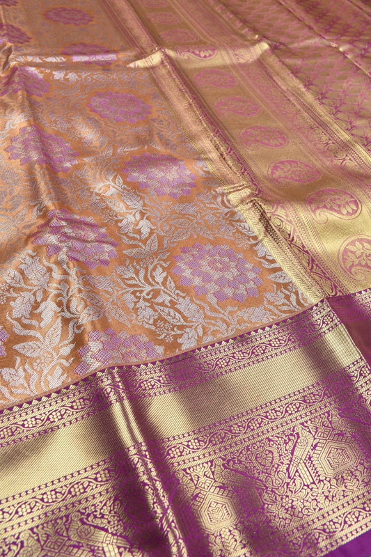 Light Orange Semi Silk All Over Jacquard Fancy Florals Contrast Border Bridal Tissue Saree