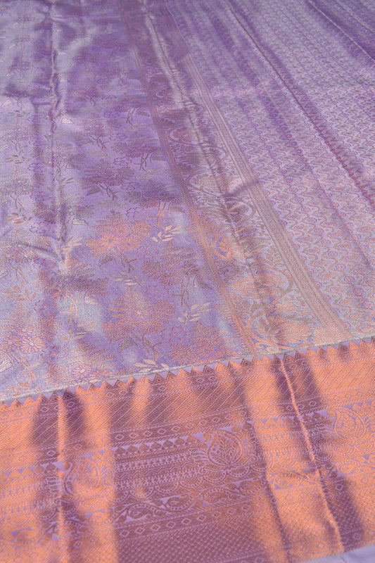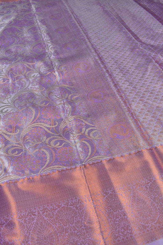 Light Violet Semi Silk Tissue Fancy Leaves Design Zari Border Saree