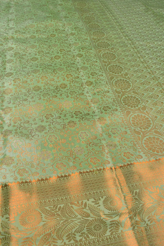 Light Green Semi Silk Tissue Floral Brocase Zari Border Saree